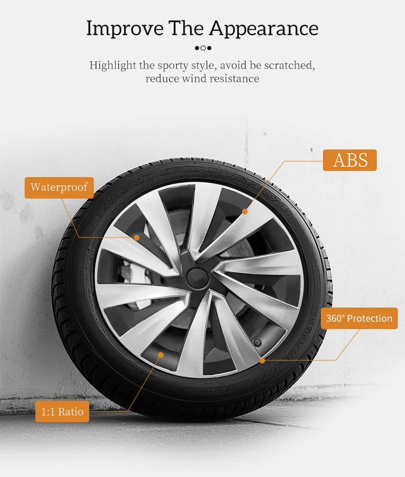 4 PCS 19Inch Sporty Wheel Hub Cap Fully Wrap Rim Cover for Tesla Model Y 2020-2024
