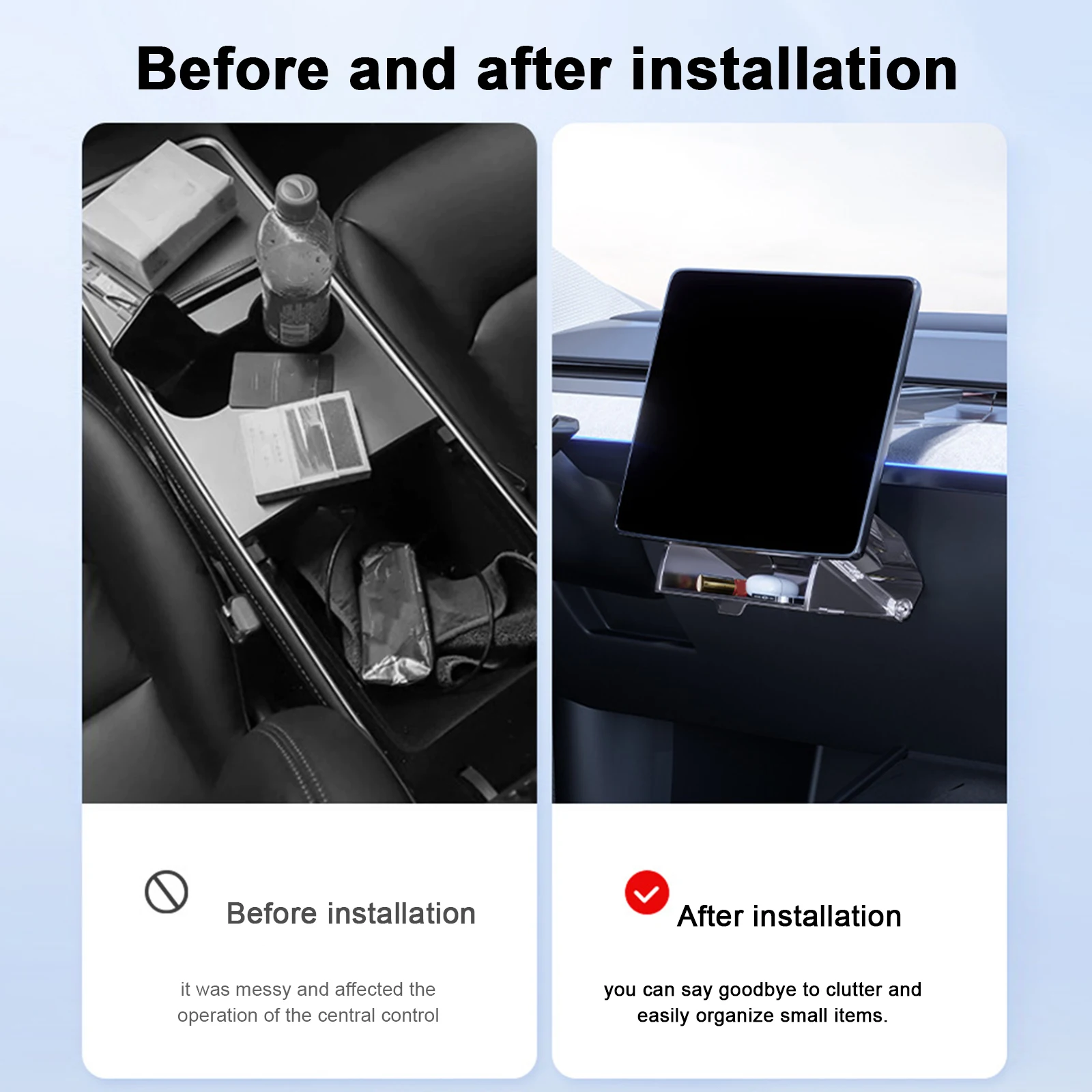 4.Effortless Installation: Experience a hassle-free setup with our dashboard organizer's secure clip design, providing greater stability than magnetic alternatives. Install in just one minute without obstructing sensors.