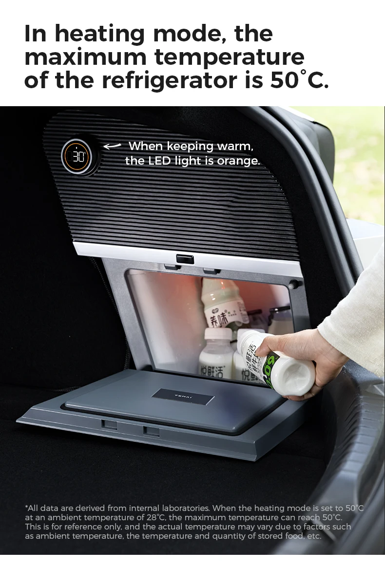 Note: Due to Tesla's car system update, car off or sentinel mode will not allow the refrigerator to operate properly, you need to turn on the camping mode or start the car in order for the refrigerator to operate properly.