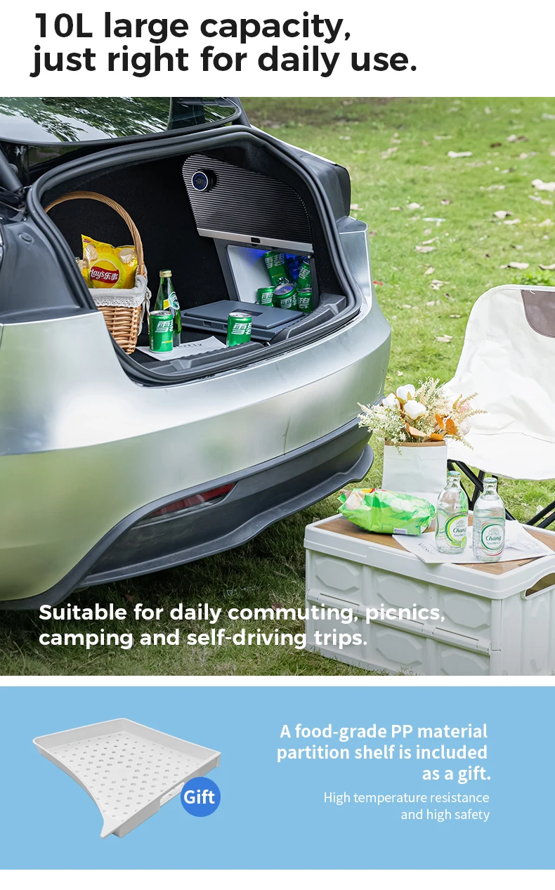 NEW For Tesla Model 3 Highland 10L Portable Fridge - 50°C Heat/-10°C Silent Freeze Compressor Cooler for Camping Outdoor Travel